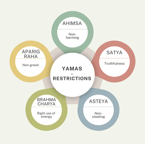 1st limb: Yamas - the 5 restraints to find balance with our outside world.